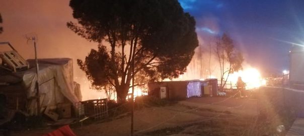 Pero es en Palos de la Frontera donde se registra el mayor campamento de infraviviendas de los inmigrantes temporeros, con unos mil habitantes: 820 hombres y 130 mujeres de las nacionalidades citadas. Como en los demás casos, construyen sus chabolas con materiales de desecho procedentes de los invernaderos, tales como plásticos, cartones, palés de madera, cuerdas y tubos de riego. Los incendios, casi siempre atribuidos a causas accidentales y casi nunca investigados a fondo, han vuelto a arrasar de nuevo (13 de mayo) un asentamiento en Palos. Unos cuatrocientos inmigrantes lo perdieron todo, incluidos sus coches. Y lo más sorprendente: el alcalde y diputado nacional del PP Carmelo Romero Hernández, un tipo al que le tocó el gordo de la Lotería de Navidad (400.000 euros, según declaró en el Registro de Intereses del Congreso) se desentendió de las víctimas y se negó a que fueran acogidas en instalaciones municipales.