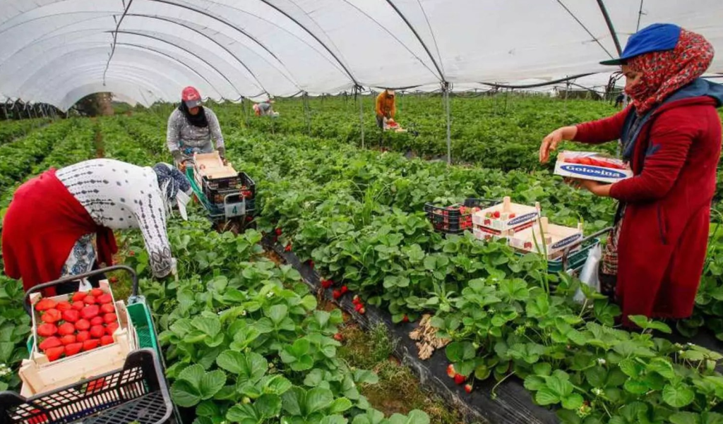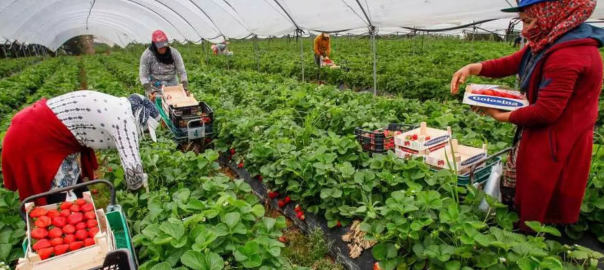 A las necesidades laborales en los túneles de plástico y las naves de manipulación y envasado se añade la producción de cítricos, que necesitan mano de obra todo el año, y cuya campaña de recogida coincide con la de los frutos rojos. Puesto que los trabajadores locales son insuficientes, los productores han de recurrir a inmigrantes, principalmente mujeres. Primero fueron las polacas y después las rumanas y las búlgaras. En la campaña 2006-07, el 90% de los contratos en origen se realizaron en Rumanía. Las profesoras Miedes y Redondo dijeron en un congreso feminista en Zaragoza que la preferencia de los empresarios agrícolas por la mano de obra femenina se debía a sus cualidades y comportamiento. Citaron las declaraciones de un patrón fresero en la prensa local: “Las manos de las mujeres son más adecuadas para la recolección de la fresa, que es muy delicada. Además, la convivencia en el campo es muy estrecha, y ellas generan menos conflictos. Y no van a la discoteca, no fuman, no beben. Se concentran mucho más en trabajar y ahorrar”.